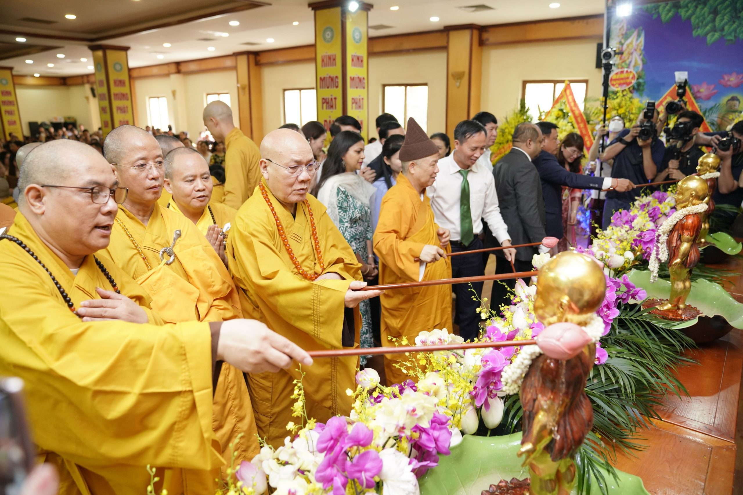 Thủ tướng và các Đại biểu đã lên chùa dâng hương lễ phật, và thực hiện nghi thức tắm Phật như các Phật tử vẫn làm trong lễ Phật đản hàng năm.