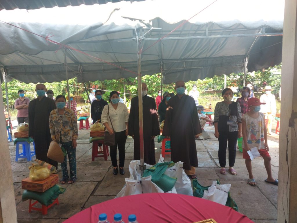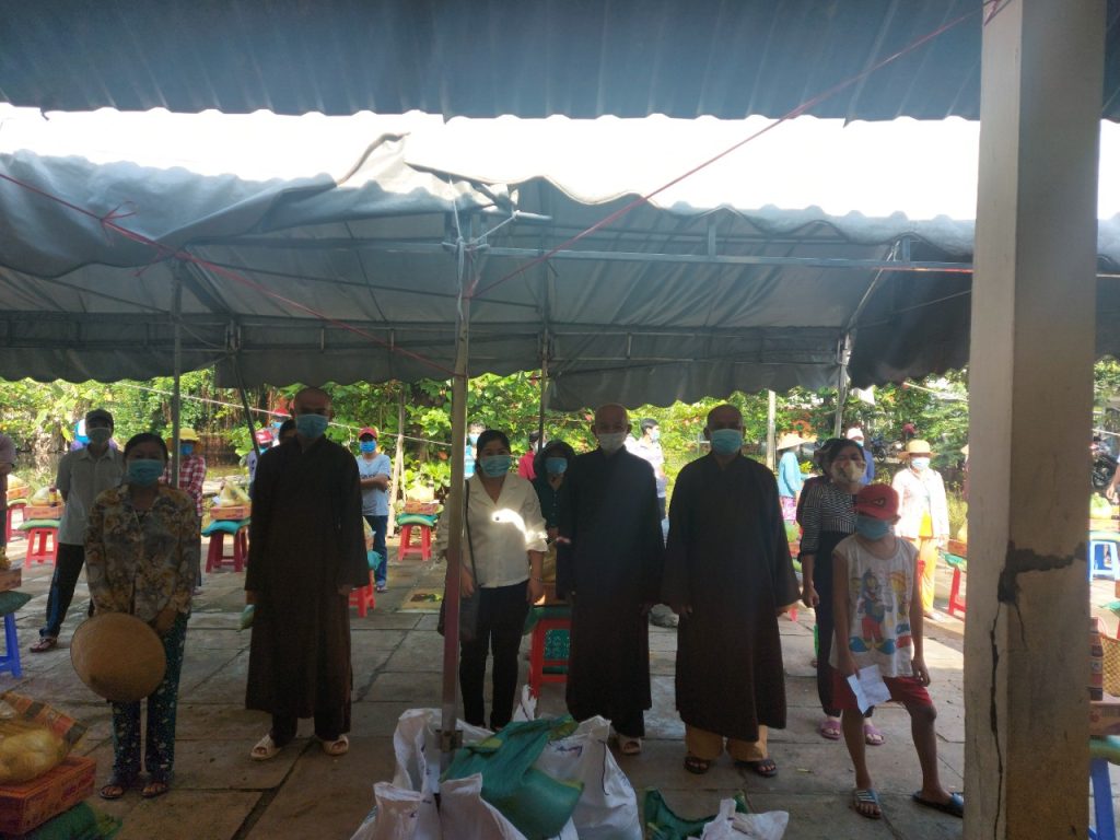 Tiếp tục hỗ trợ người dân gặp khó khăn trong mùa dịch Covid, dưới sự vận động của Thượng tọa Thích Trung Chánh – Ủy viên Thường trực BTS GHPGVN tỉnh Tiền Giang, Trưởng BTS Phật giáo huyện Châu Thành; Sáng này 5/10/2021, chư Tăng chùa Long Tường (xã Tam Hiệp, huyện Châu Thành, tỉnh Tiền Giang) đã kết hợp với Chính quyền xã Song Thuận tổ chức trao tặng 100 phần quà đến bà con các ấp Mỹ Phú, Mỹ Hòa và Mỹ Thạnh thuộc xã Song Thuận, huyện Châu Thành, tỉnh Tiền Giang.