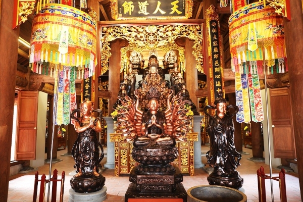 Qua bàn tay tài hoa của những nghệ nhân hàng đầu Việt Nam và được đúc theo công nghệ khuôn vỏ mỏng cầu kỳ bậc nhất hiện nay, bộ tượng tinh xảo tôn thêm vẻ đẹp uy nghiêm của ngôi chùa.