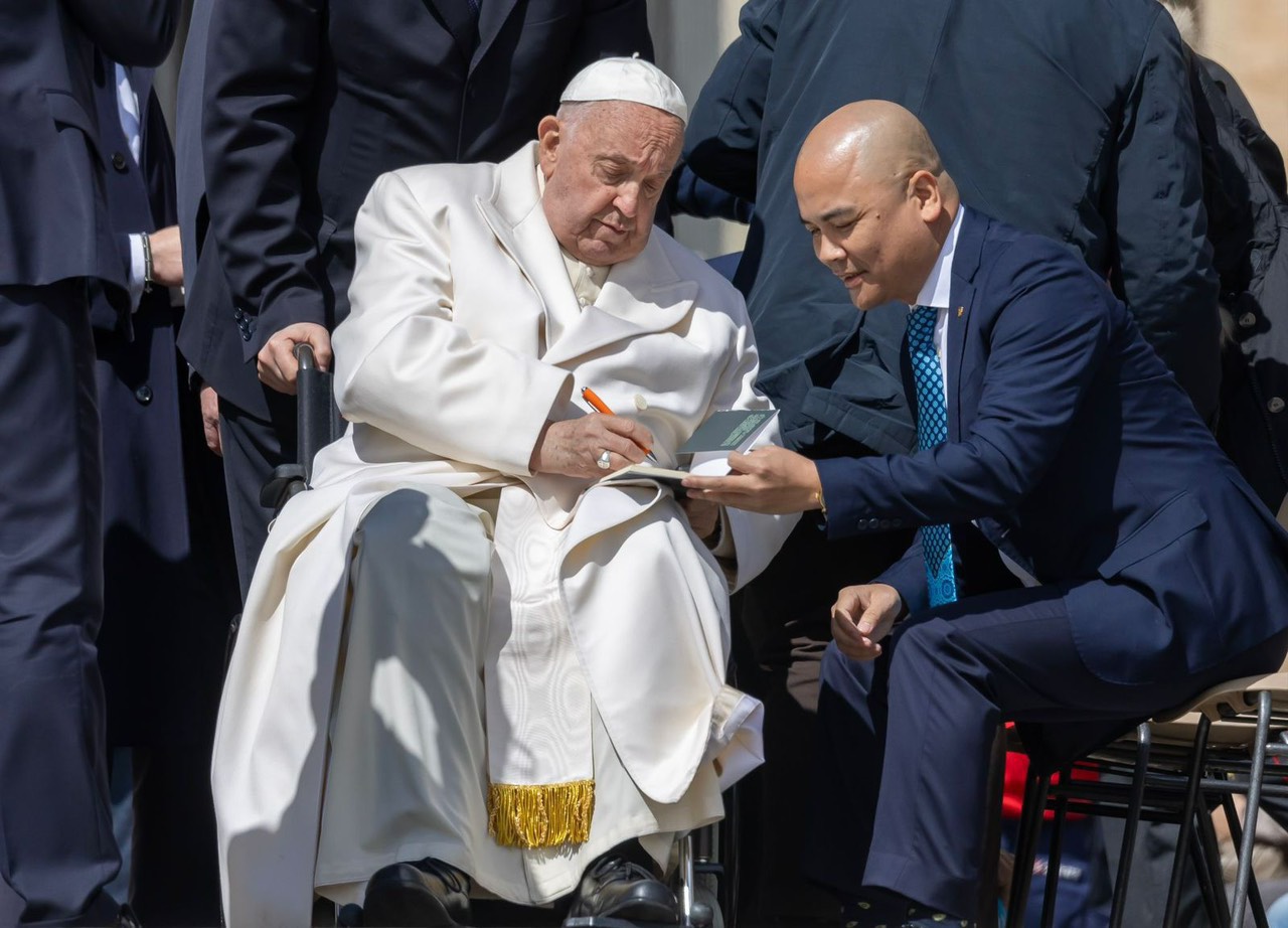 Điều đặc biệt hơn, cuốn sách “Tình thương” được tác giả trực tiếp trao cho Giáo Hoàng Francis tại Quảng trường Thánh Peter, sau khi nghe thông điệp của tác giả, Ngài đã ký vào cuốn sách như một cử chỉ ấm áp và vô cùng vĩ đại vì sự giản dị.