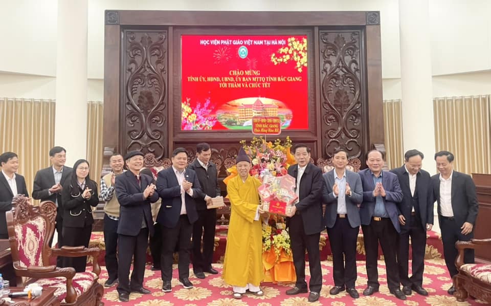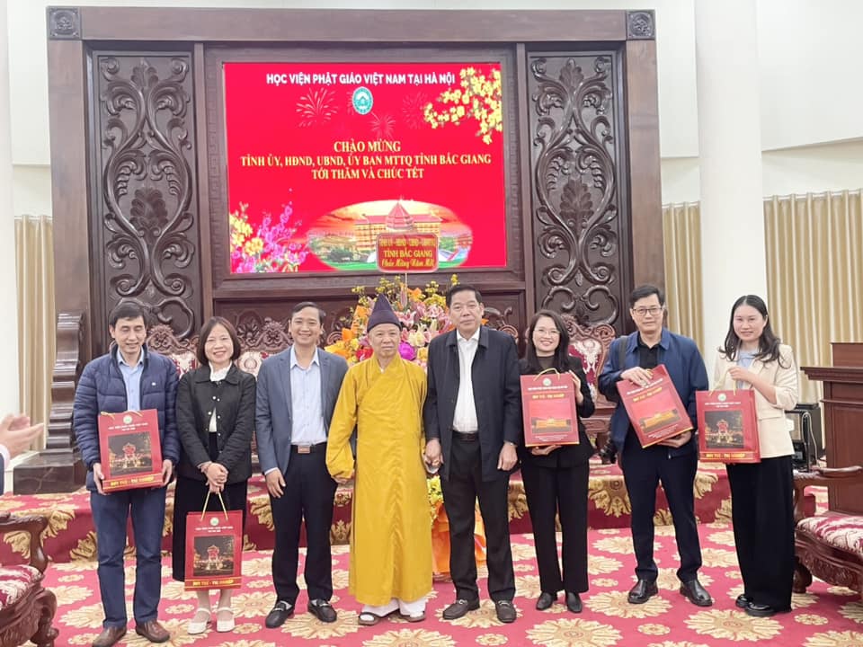 Chiều ngày 22/01/2025, ông Nguyễn Văn Gấu- Uỷ viên Trung ương Đảng, Bí thư Tỉnh uỷ Bắc Giang dẫn đoàn Tỉnh uỷ, HĐND, UBND, Uỷ Ban MTTQ tỉnh Bắc Giang đến thăm và chúc tết Hoà thượng Viện trưởng Thích Thanh Quyết nhân dịp xuân Ất Tỵ 2025.