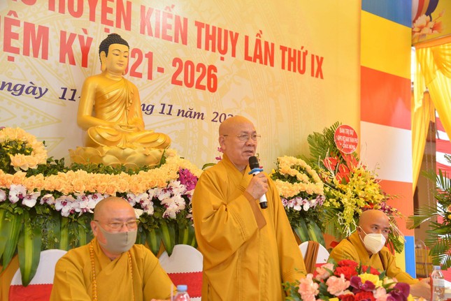 Ban đạo từ, Hòa thượng Thích Quảng Tùng tán thán công đức của Ban Trị sự GHPGVN huyện Kiến Thụy nhiệm kỳ qua đã đạt được những thành tựu đáng kể; hy vọng tân Ban Trị sự nhiệm kỳ tới sẽ tiếp tục phát huy, kế thừa những thành quả đã đạt được và hoàn thành tốt phương hướng hoạt động Phật sự mà đại hội đã đề ra.