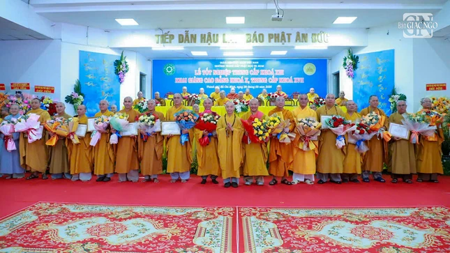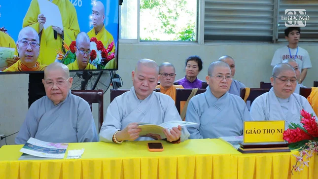 Đồng thời, trường cũng chính thức tiếp nhận và khai giảng năm học mới cho 64 Tăng Ni sinh hệ Cao đẳng Phật học khóa X (2026-2028) và 110 Tăng Ni sinh hệ Trung cấp khóa XVII (2026-2029).