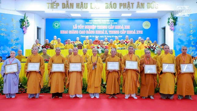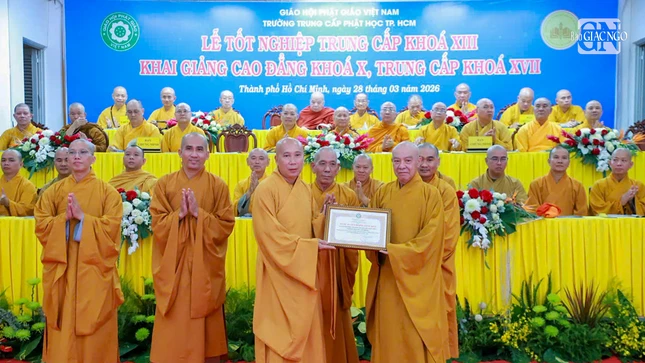 Sáng nay, 28-3-2026, tại Trường Trung cấp Phật học TP.HCM đã diễn ra Lễ tốt nghiệp Trung cấp Phật học khóa XIII (2021-2024), đồng thời khai giảng Cao đẳng Phật học khóa X (2026-2028) và Trung cấp Phật học khóa XVII (2026-2029)..