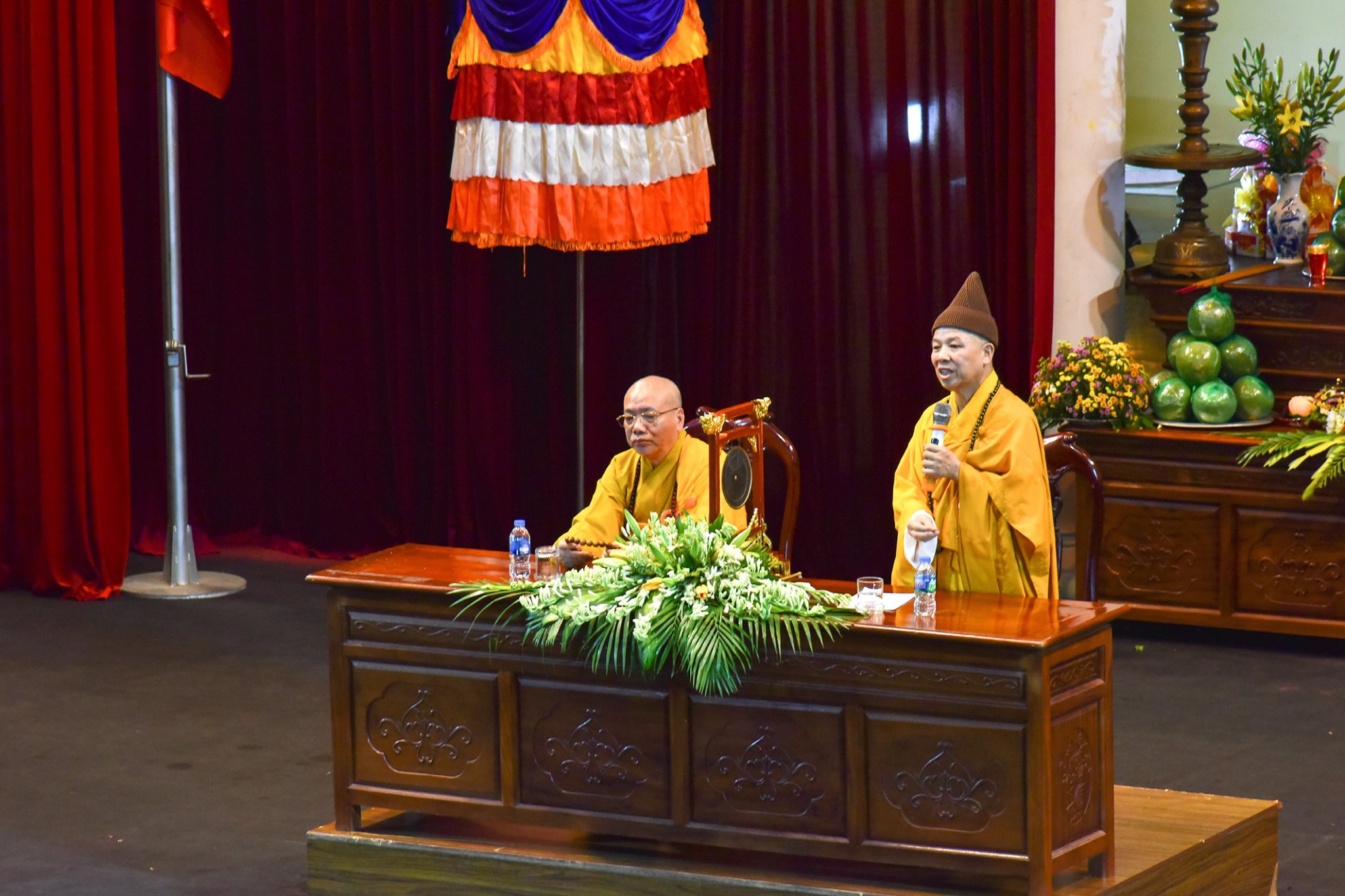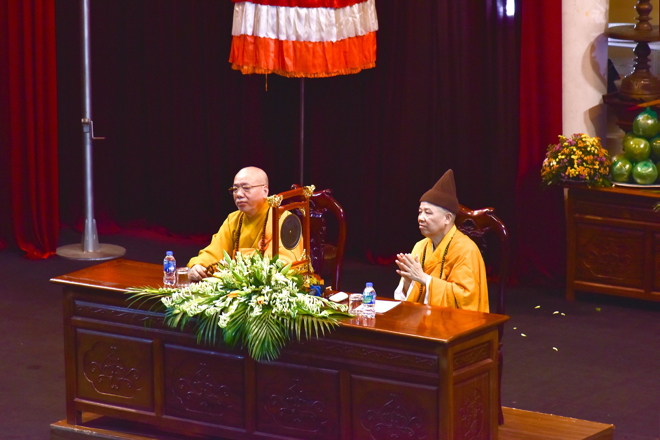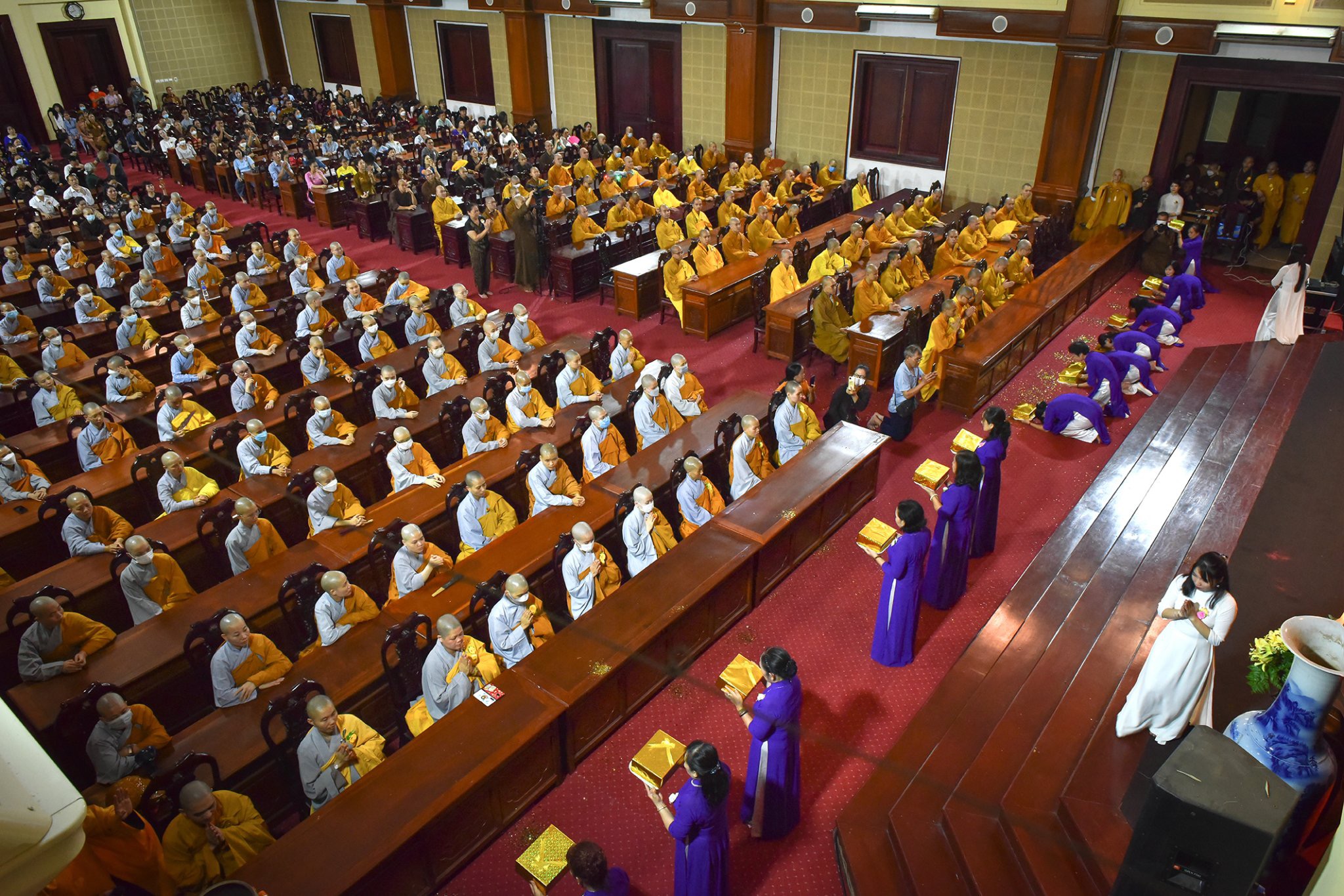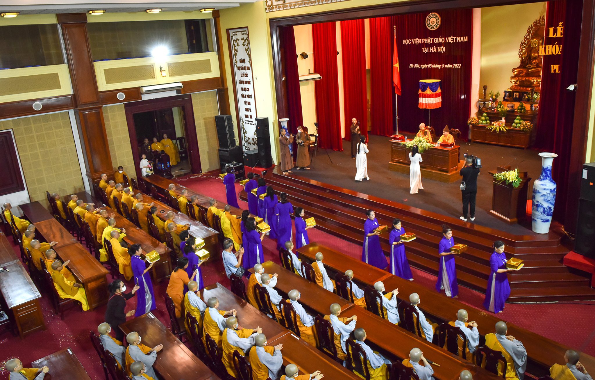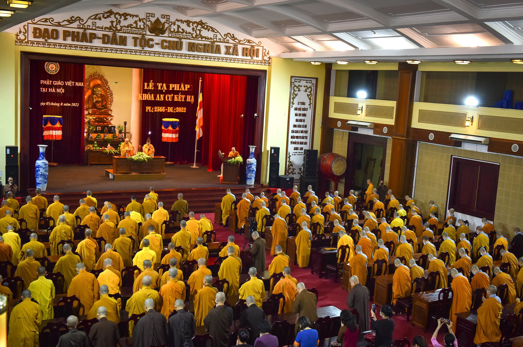 Chứng minh buổi lễ có sự hiện diện của Hoà thượng Tiến sĩ Thích Thanh Đạt – Chủ tịch Hội đồng Khoa học Học viện – Đường chủ Hạ trường Sóc Thiên Vương; Hoà thượng Tiến sĩ Thích Thanh Quyết – Phó Chủ tịch Hội đồng Trị sự, Viện Trưởng Học viện; Giáo sư Lương Gia Tĩnh- Uỷ viên Hội đồng Trị sự – Phó Viện trưởng Học viện; Tăng Ni đang theo học tại Học viện và đông đảo quý vị quan khách và Phật tử từ khắp nơi vân tập về Học viện cũng như theo dõi online cùng tham dự .