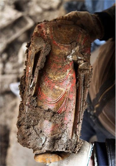 Trong lần khai quật gần 3.000 bức tượng Phật tại thành Hàm Đan, tỉnh Hà Bắc (Trung Quốc), các nhà khảo cổ đã phát hiện phần đầu của một bức tượng Bồ Tát có niên đại 1.500 năm.