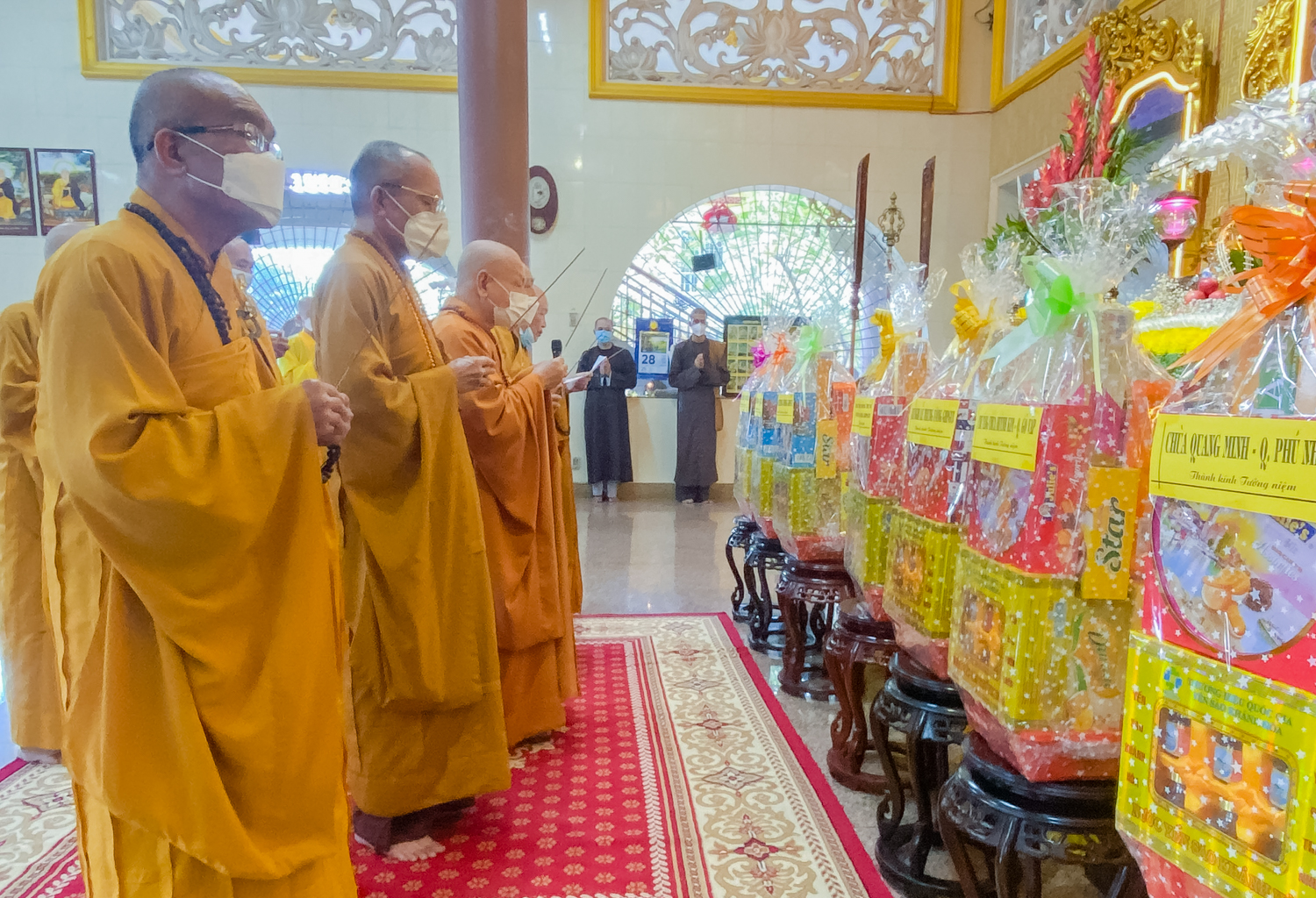 Tháp tùng Hòa thượng Chủ tịch có HT.Thích Thiện Pháp, Phó Chủ tịch TT HĐTS, Trưởng Ban Tăng sự TƯ; HT.Thích Huệ Trí, Ủy viên TT HĐTS, Trưởng Ban Pháp chế TƯ; HT.Thích Huệ Minh, Uỷ viên TT HĐTS, Trưởng Ban Nghi lễ TƯ; chư Tôn đức HĐTS, Văn phòng 2 Trung ương Giáo hội.