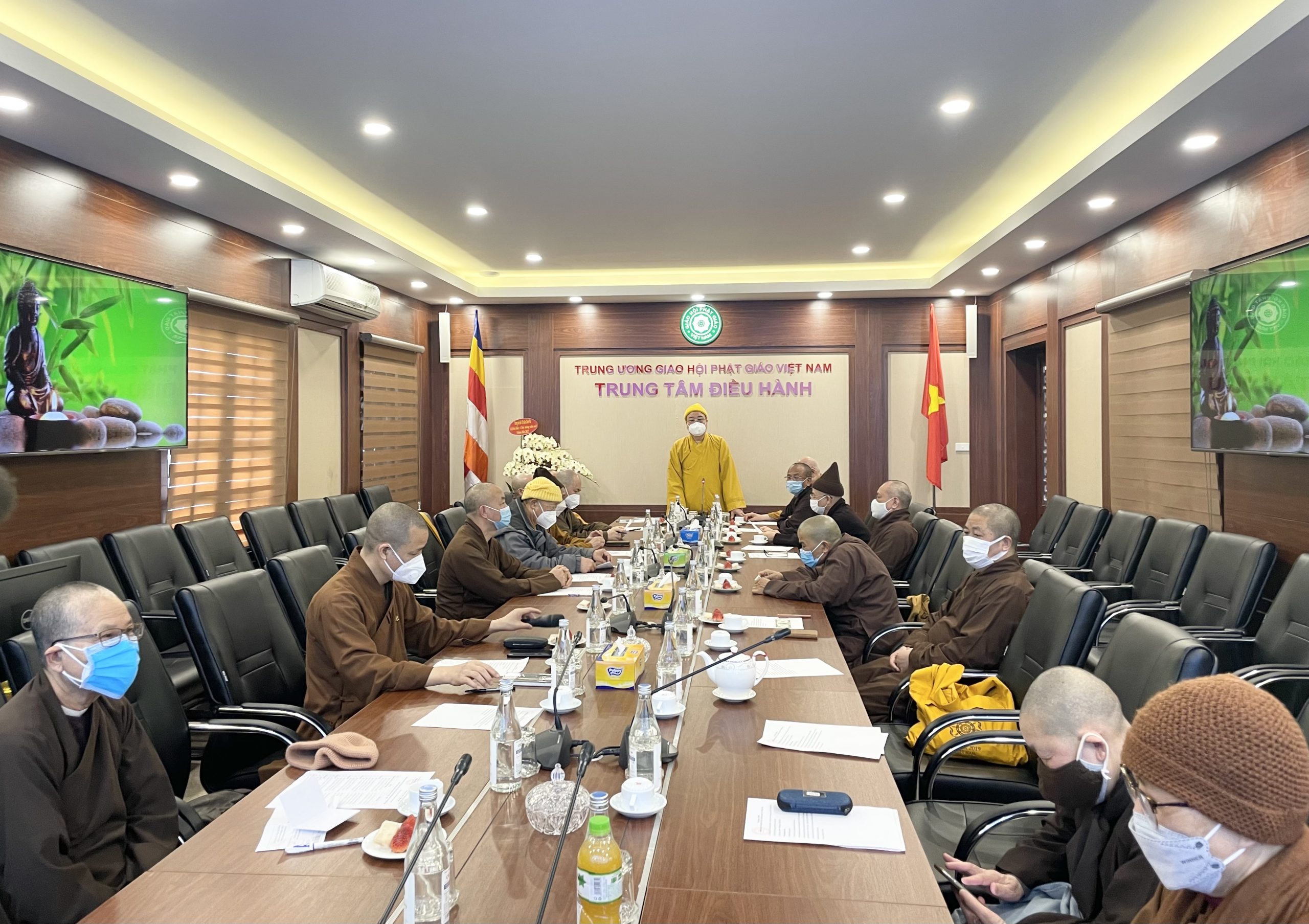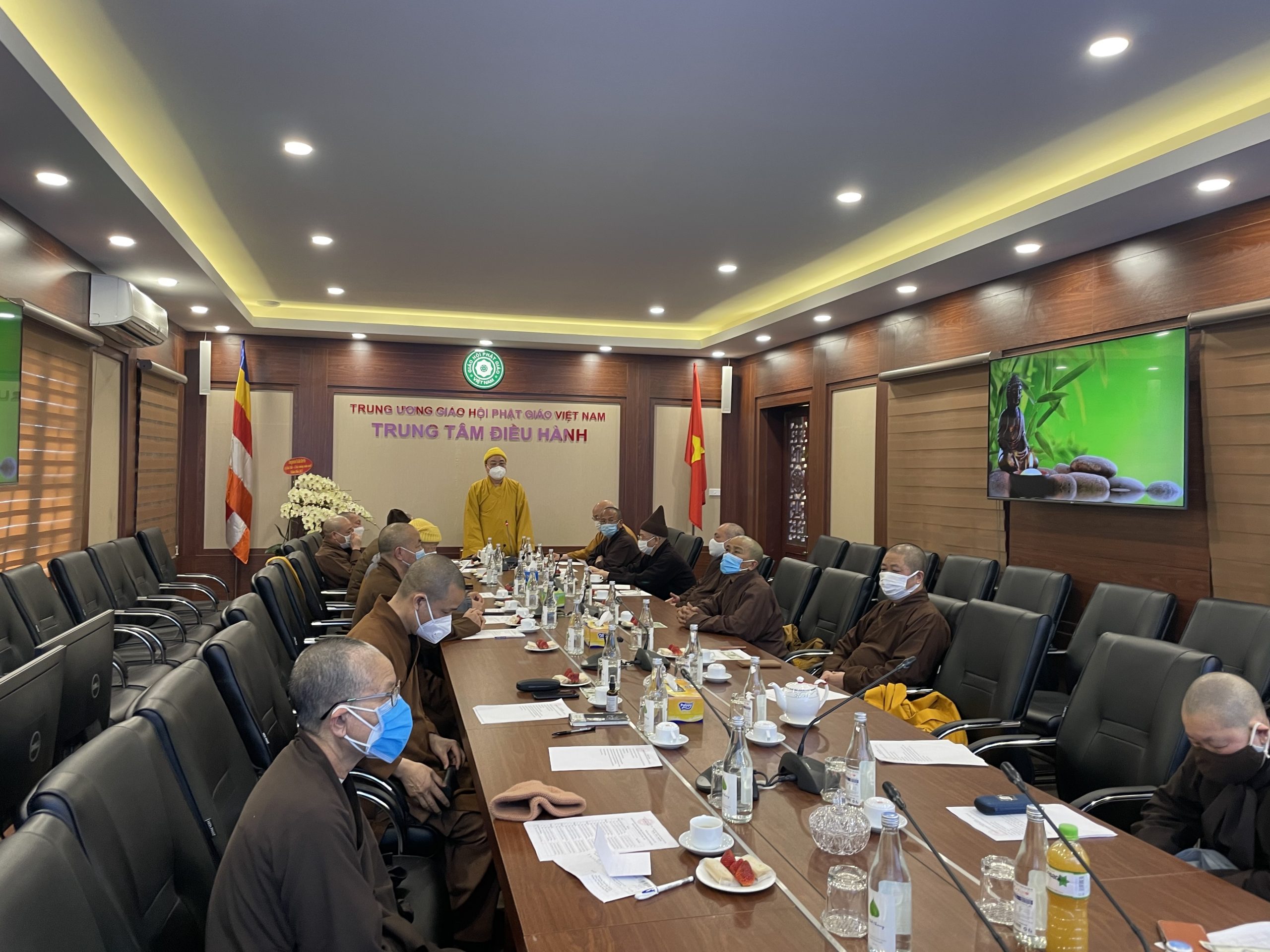 Hoà thượng Thích Thanh Nhiễu – Phó Chủ tịch Thường trực Hội đồng Trị sự chủ trì phiên họp; cùng tham dự có các Hoà thượng Phó Chủ tịch, các Hoà thượng, Thượng toạ, Ni trưởng, Ni sư trong Ban Thường Trực.
