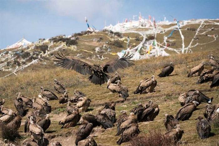 Trong khi đó, những đàn kền kền đói lượn khắp bầu trời, và sói lang thang quanh vùng. Với những đặc điểm địa lý đó, thiên táng xem ra là hợp lý nhất với họ.