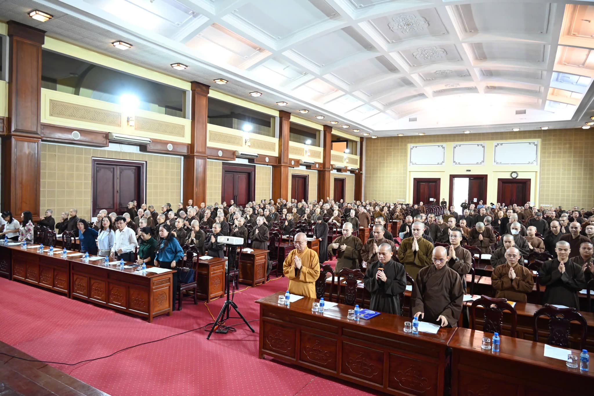 Tại Hội nghị ông Lê Minh Khánh đại diện Nhà nước, Ban dân vận Trung ương-Vụ Tôn giáo chia sẻ về đặc điểm tình hình tôn giáo trong nước cùng với sự hình thành các tôn giáo được Chính phủ, Nhà nước Việt Nam công nhận trên tinh thần đoàn kết, hoà hợp cùng phát triển tốt đời đẹp đạo. Đồng thời ông cũng chia sẻ một số quan điểm trong nhận thức Phật giáo trong thời đại số, đặc biệt là hình ảnh Phật giáo trên thông tin truyền thông, tất cả phải được kiểm duyệt đồng thời có sự quán triệt về những thông tin sai lệch, bôi nhọ và phá sự đoàn kết tôn giáo. Gây hiềm khích và hiểu lầm giữa các tín đồ, giáo dân, chức sắc, chức việc…Phật tử. Người lãnh đạo các tổ chức phải nắm rõ về các luật định của Ban tôn giáo Chính phủ, hiểu đúng và vận hành đúng các cơ sở, sinh hoạt tôn giáo theo Hiến pháp và Hiến chương Giáo hội.