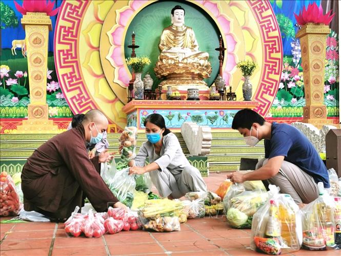 Suốt hai tháng qua, trong khuôn viên uy nghiêm của chùa Bằng (Linh Tiên Tự) tại phường Hoàng Liệt, Hoàng Mai, khi trời còn mờ sáng là lúc Hòa thượng Thích Bảo Nghiêm cùng một số đệ tử tự tay gói ghém những mớ rau, cân gạo… để kịp mang đi hỗ trợ cho các gia đình gặp khó khăn do dịch COVID-19 trên địa bàn quận Hoàng Mai.