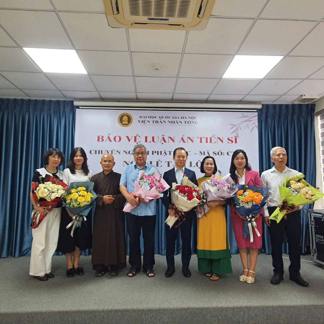 KVO – Hôm nay, ngày 01/10/2024, tại Viện Trần Nhân Tông (Đại học Quốc gia Hà Nội) tổ chức bảo vệ luận án tiến sĩ Phật học cấp Viện cho NCS Lê Tấn Lộc (Giáo viên hướng dẫn: PGS. TS. Hoàng Thu Hương; TT.TS. Thích Nguyên Đạt). Tham gia Hội đồng đánh giá luận án tiến sĩ có 07 thành viên: