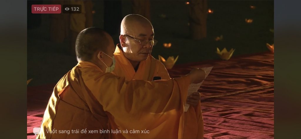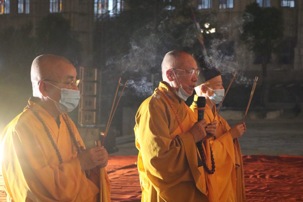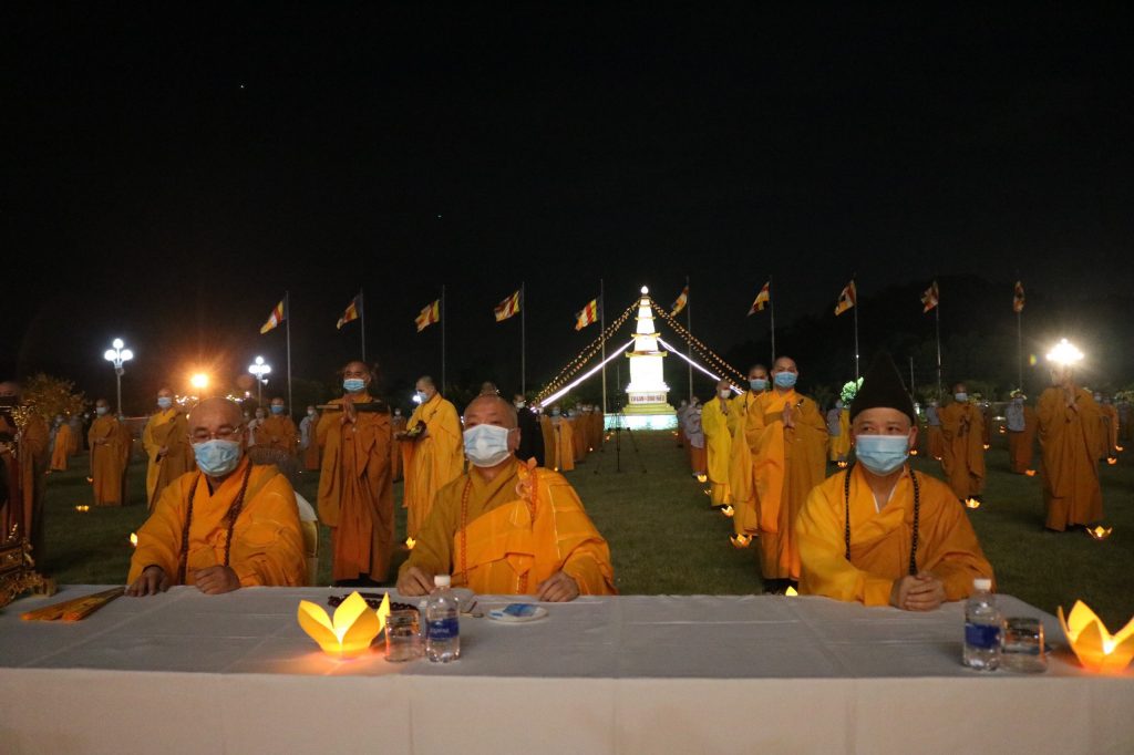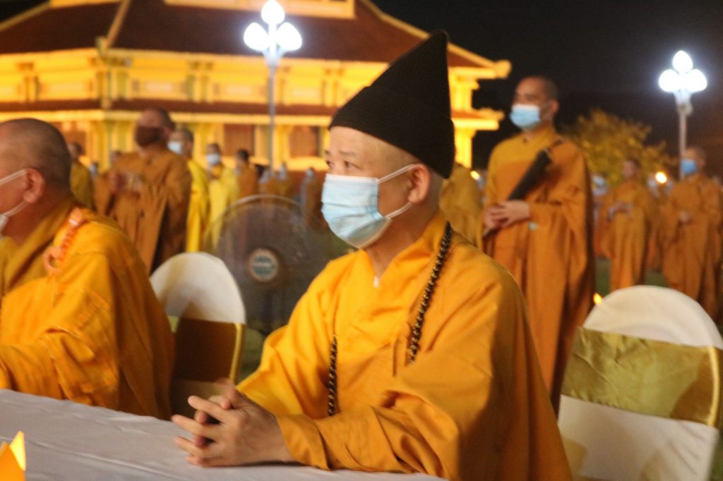 Sau một hồi chuông trống Bát Nhã, HT Thích Thanh Ân – Chánh Duy na Hạ trường Sóc Thiên Vương tuyên đọc Văn tế tưởng niệm đồng bào tử nạn, chiến sĩ trận vong, thập nhị loại cô hồn, các nạn nhân tử vong do đại dịch COVID-19. Toàn thể Đại chúng cùng thực hiện nghi lễ Cầu siêu, thắp nến tri ân…